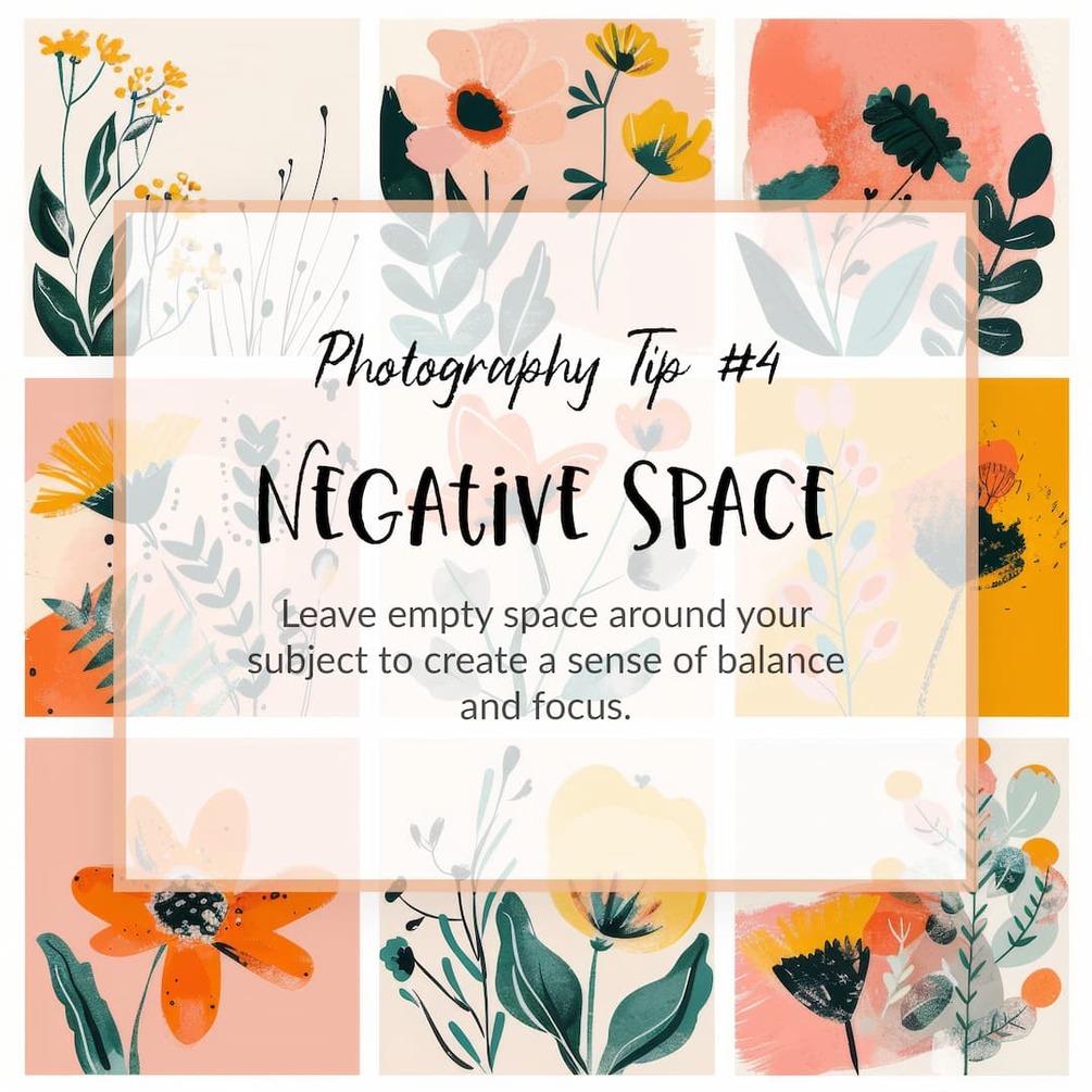 - Negative Space: Create balance and focus by leaving empty space around your subject.