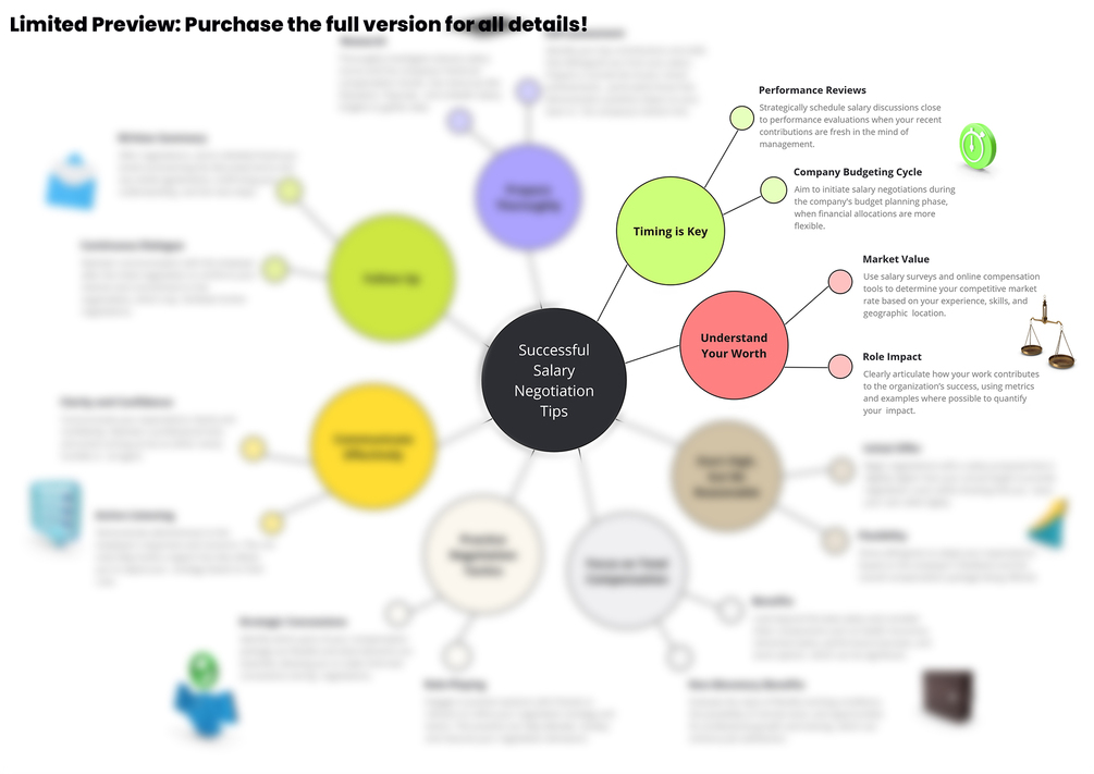 Master the art of salary negotiation with our expertly crafted Concept Map. This visual guide simplifies the complexities of salary discussions into a clear, structured format, perfect for anyone looking to boost their career and financial prospects.