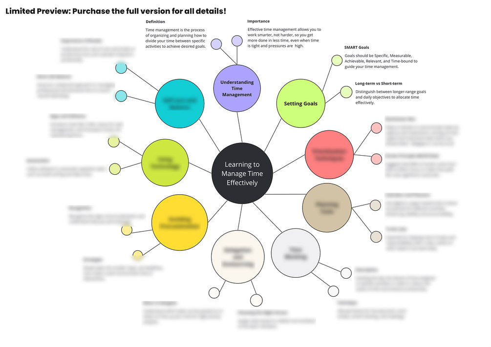 - Gain a compact and visual overview of time management strategies without getting lost in excessive detail.